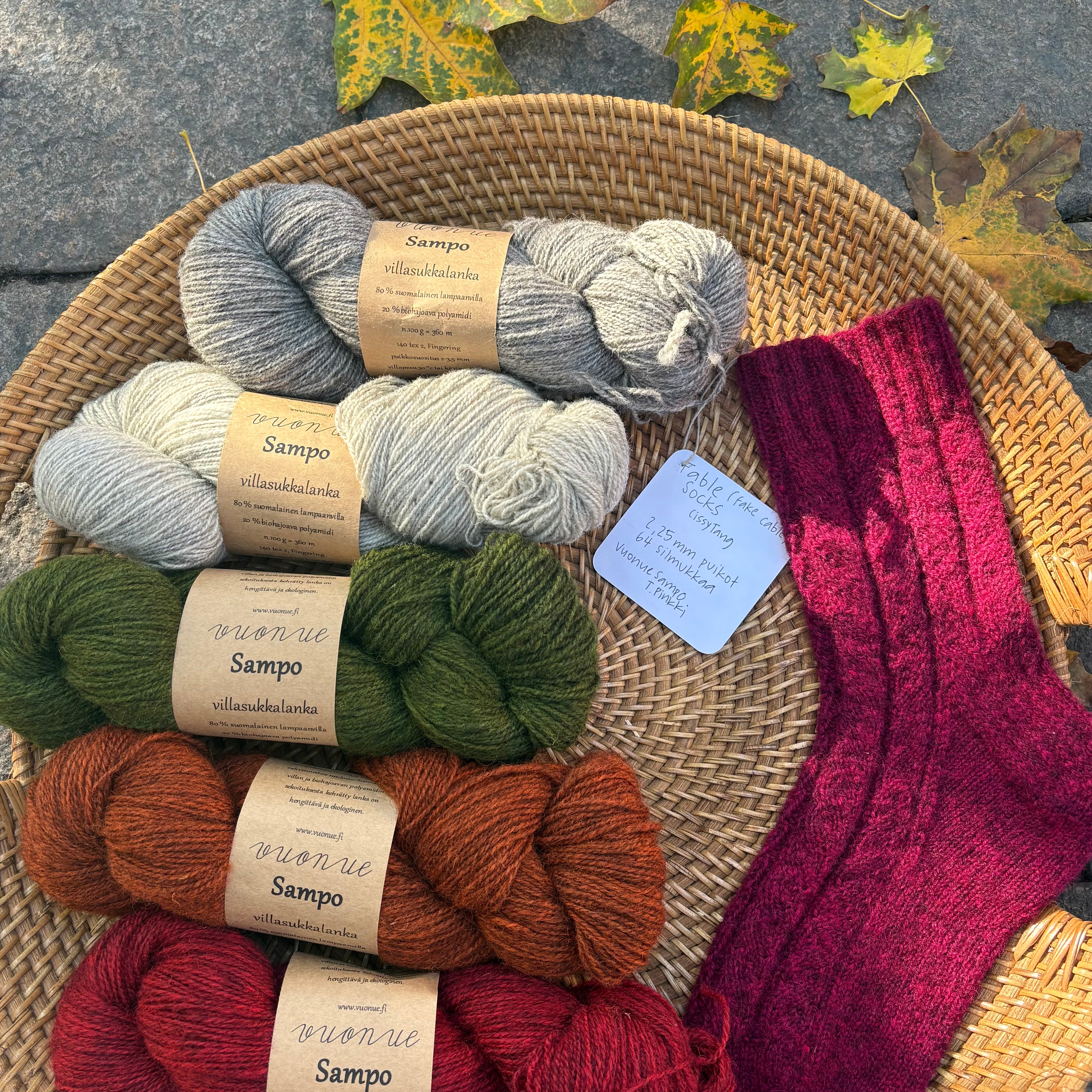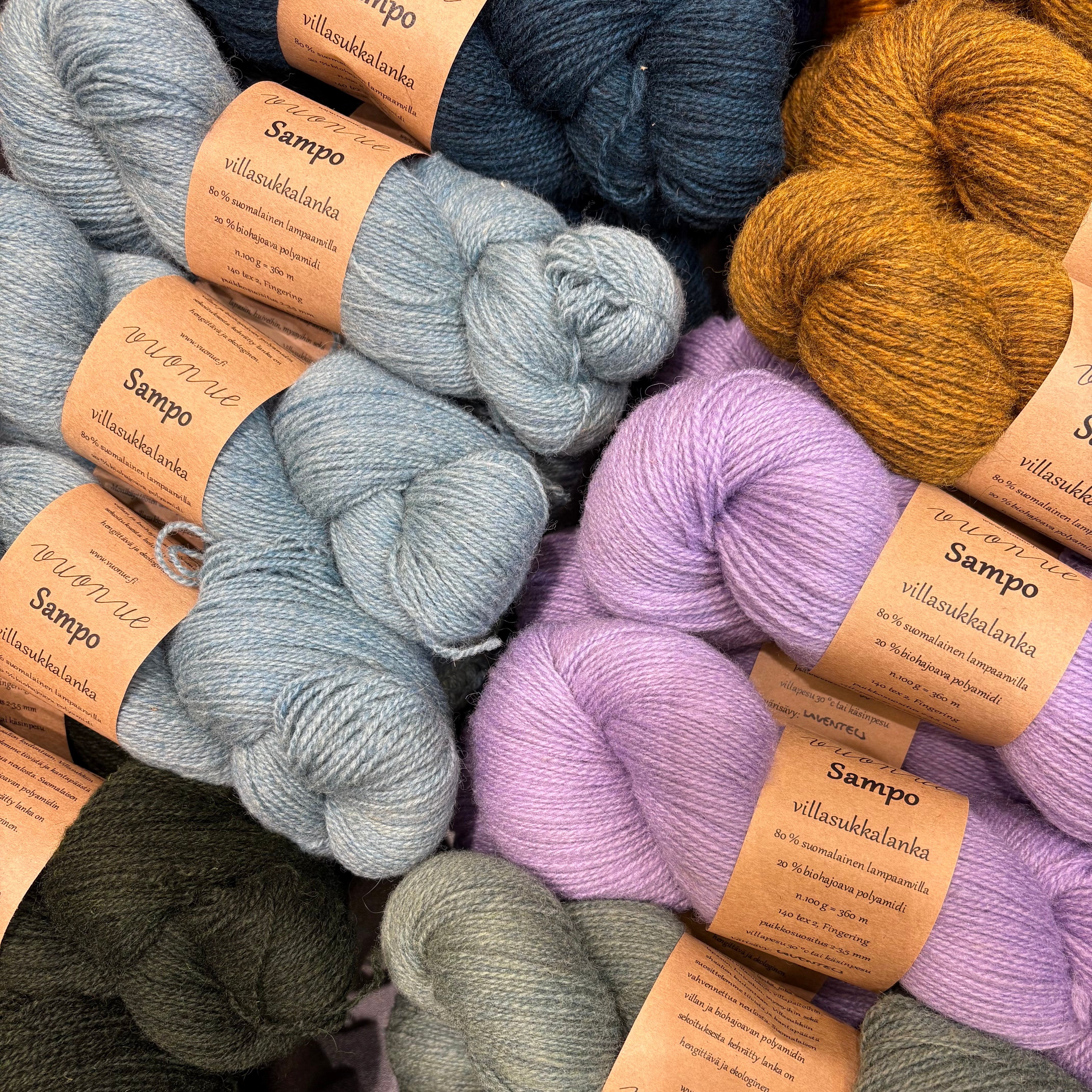 Fingering langoissa on n. 400m/100 eli n. 200m/50g.