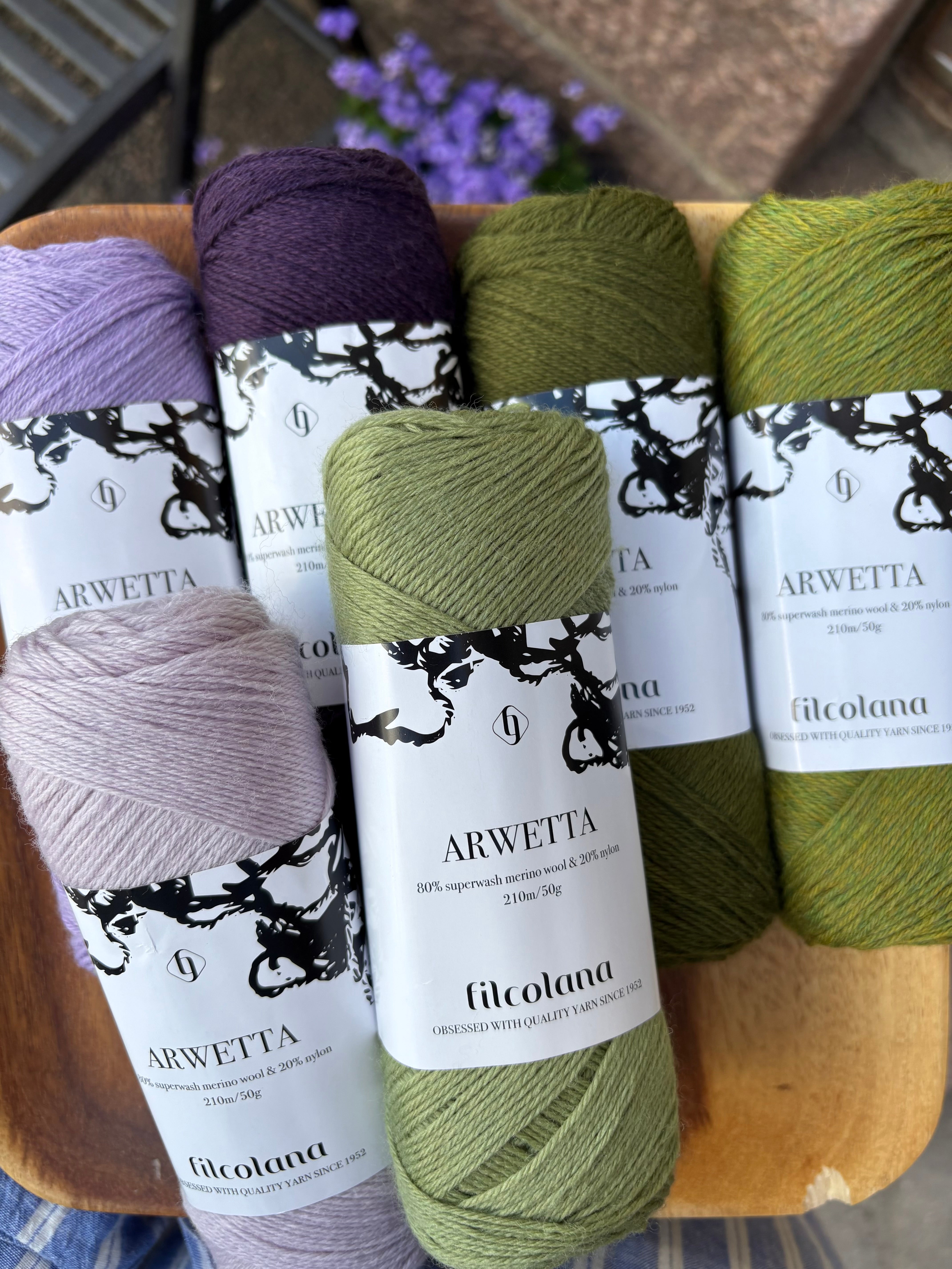 Arwetta on pehmeä merinosukkalanka polyamidivahvikkeella. Se sopii hyvin niin lasten kuin aikuisten asusteisiin. Värikartta on mahtava: löytyy niin perusvärejä, meleerattuja että tasaisempiakin sävyjä. Lanka on 50 g kerillä. Arwettaa voi neuloa myös suuremmalla puikolla silkkimohairin kanssa, jolloin neulepinnasta tulee mukavan pörröinen. Arwetan merinovilla on mulesingvapaata Falklandin merinoa. Valmistaja on tankkalainen Filcolana. Kaipaatko ohjetta Arwetalle? Valmistajan ohjeita on löydät täältä.