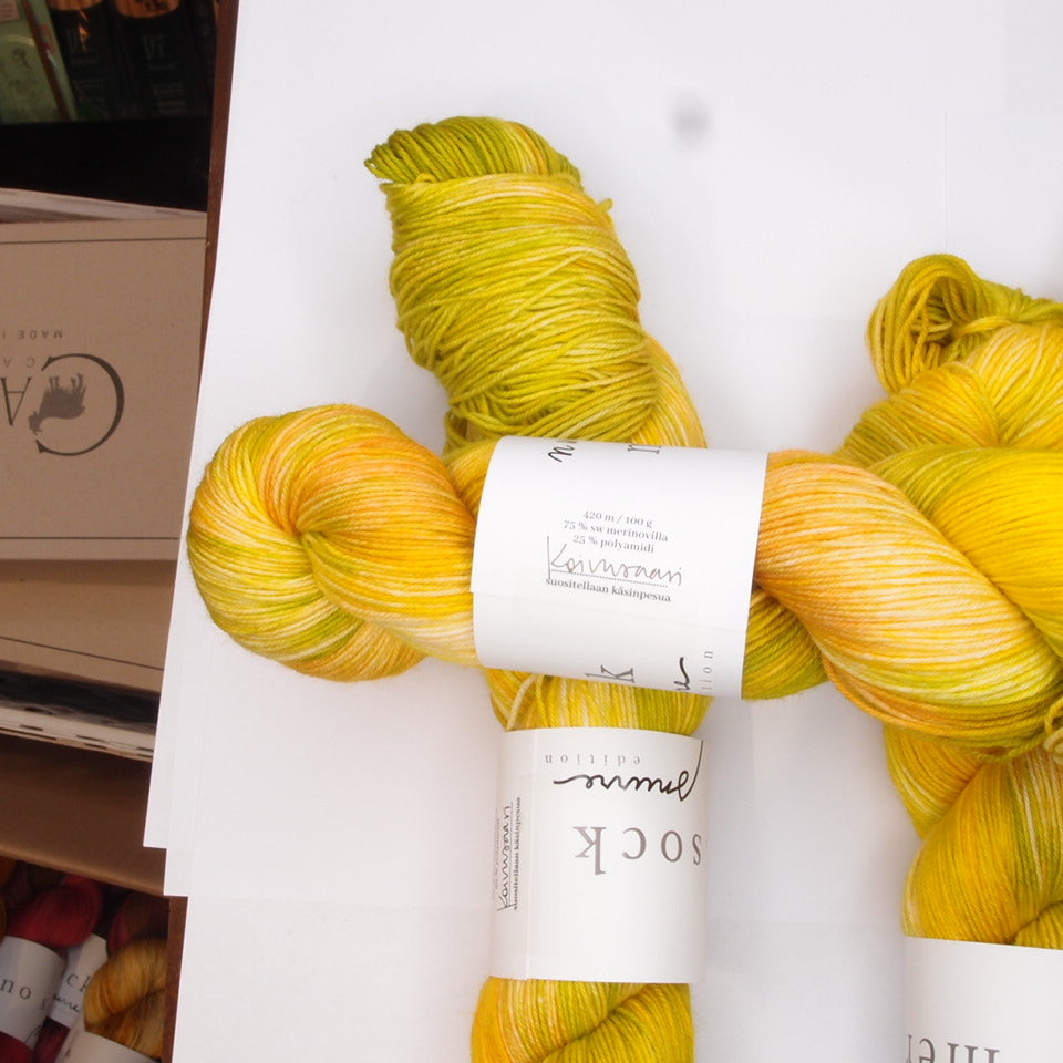 Nurja merino sock värjätään nurjan Nurjan omassa värjäämössä Tampereen Kalevassa heti kivijalkakaupan seinän takana!
