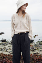 Neule neulotaan pyöreänä alhaalta ylöspäin. Mallissa on V-pääntie ja upotetut hihat. Ompeleet poimitaan ja neulotaan kädenteitä pitkin ja hihat neulotaan sieltä alas ja viimeistellään tiukoilla hihansuilla. Helman joustinneuleen ompeleet on luotu italialaisella luomistekniikalla ja ompeleet pääntiessä ja hihansuissa italialaista sidontatekniikkaa käyttäen.
