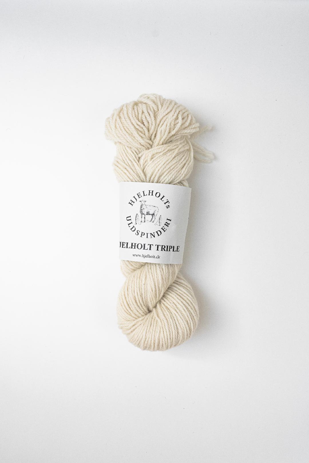 Hjelholt Triple on kolmisäikeinen villalanka aivan kuten Håndverksgarn - eli se sisältää villaa Hjelholtsin omista lampaista, sekä Gotlannin villaa tanskalaisilta/skandinaavilaisilta lampailta. Lankaan on lisätty myös pehmeää mulesing-vapaata Falklandin merinoa, joka antaa hieman pehmeyttä. Lanka kehrätään tietysti Sydfynissä.
