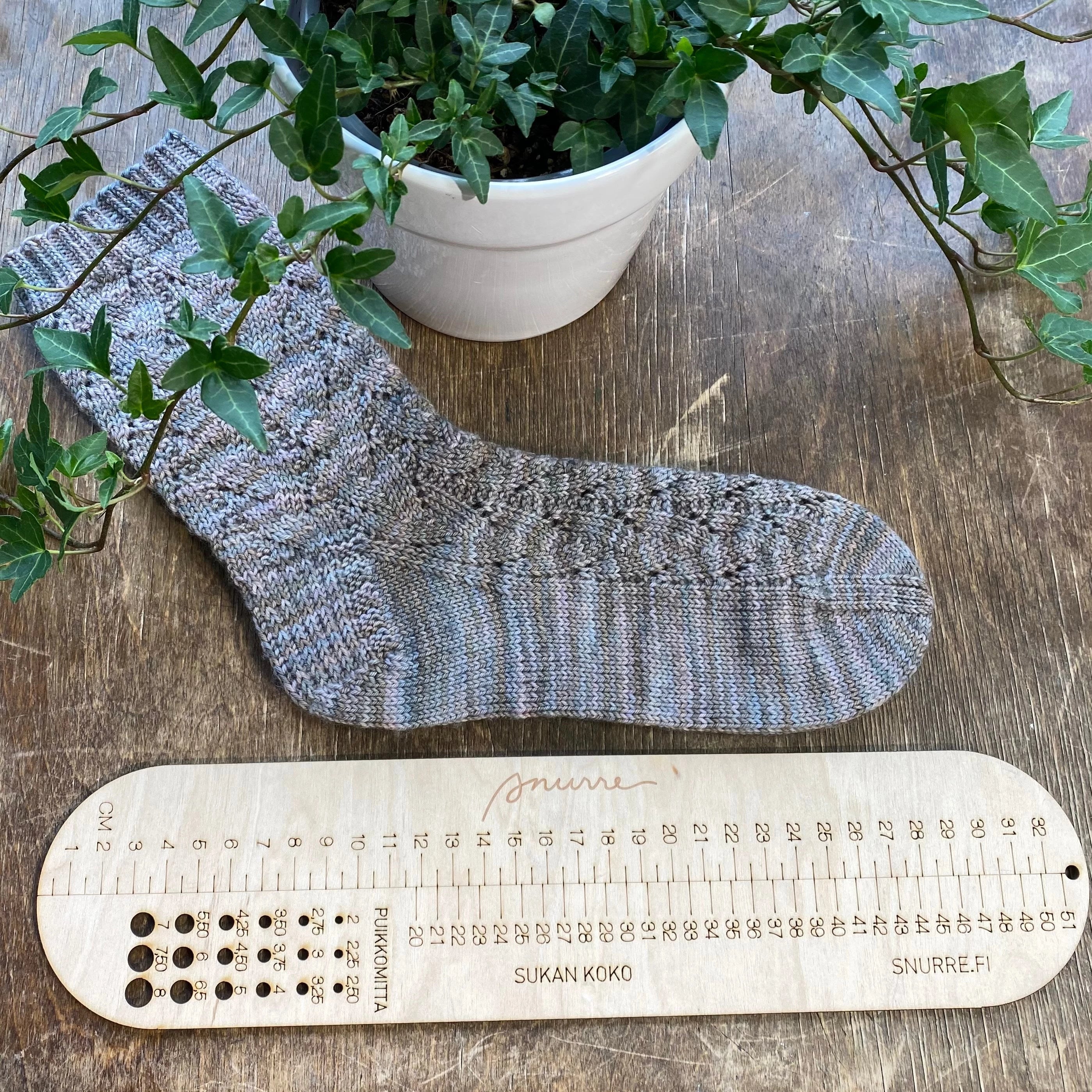 Palmikkopuikoista, erilaisista silmukoiden pitimistä, puikkosuojista, kerroslaskureista ja mittanauhoista on apua työn edetessä.