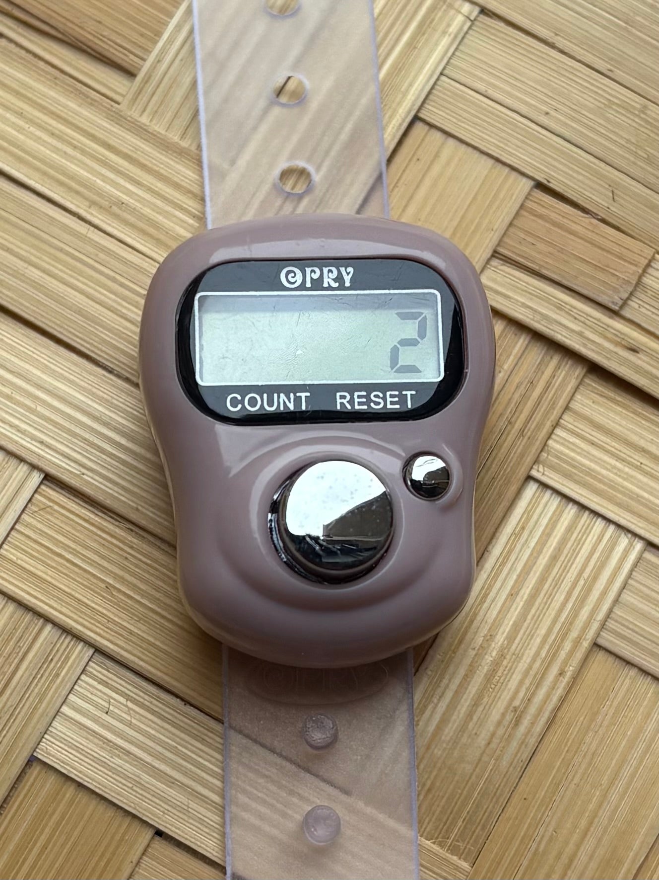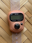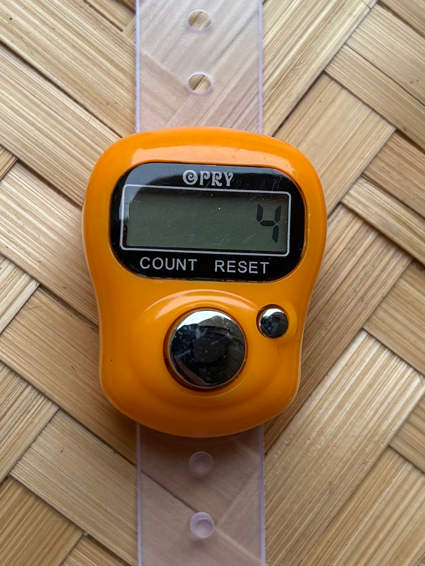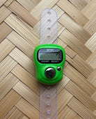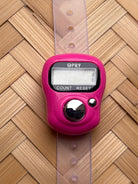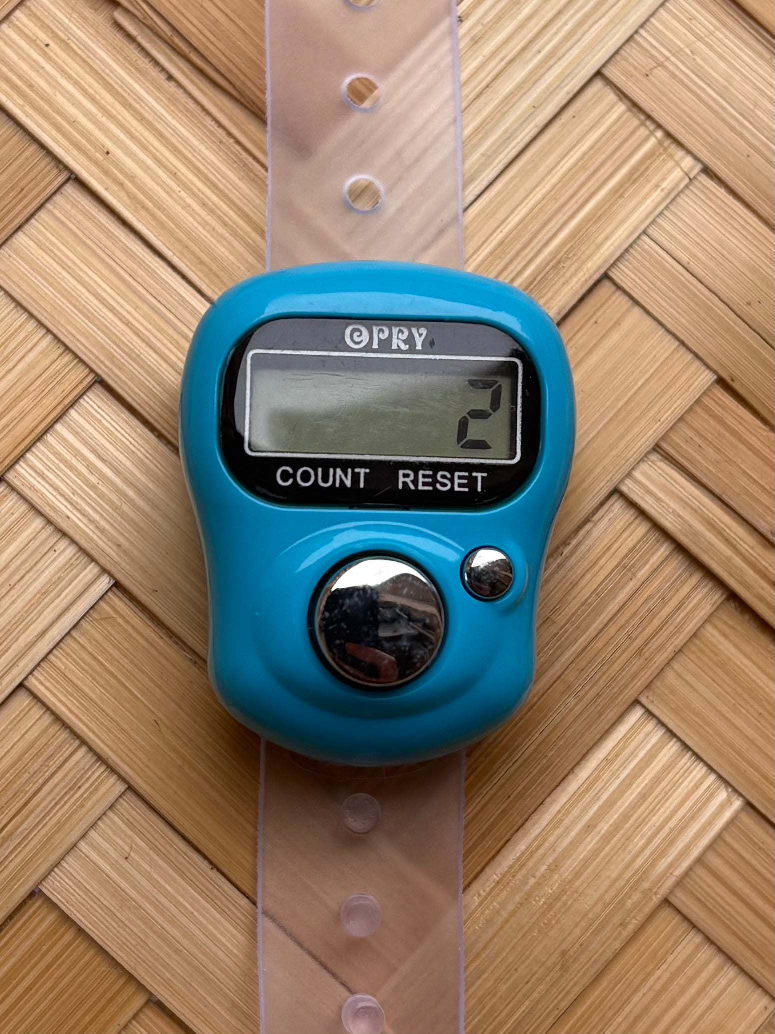Sormeen kiinnitettävä digitaalinen kerroslaskuri. Omat painikkeet kerrosten lisäämiseen ja nollaamiseen.