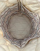 Petiteknit projektilaukku tikatusta puuvillasta keskeneräisille neuletöille, muistiinpanoille ja tarvikkeille. Laukussa on taskut sisäpuolella, joiden avulla on helppo pitää tarvikkeet järjestyksessä.