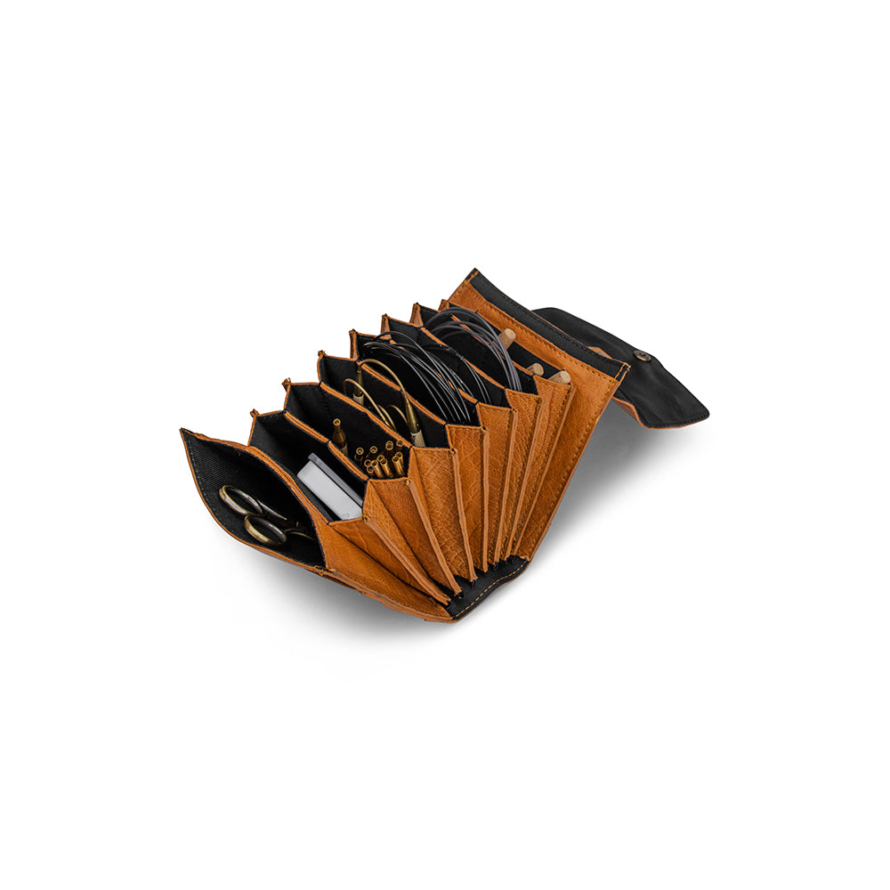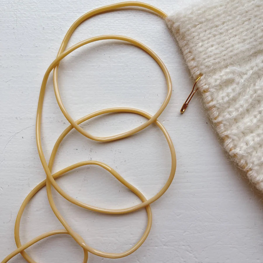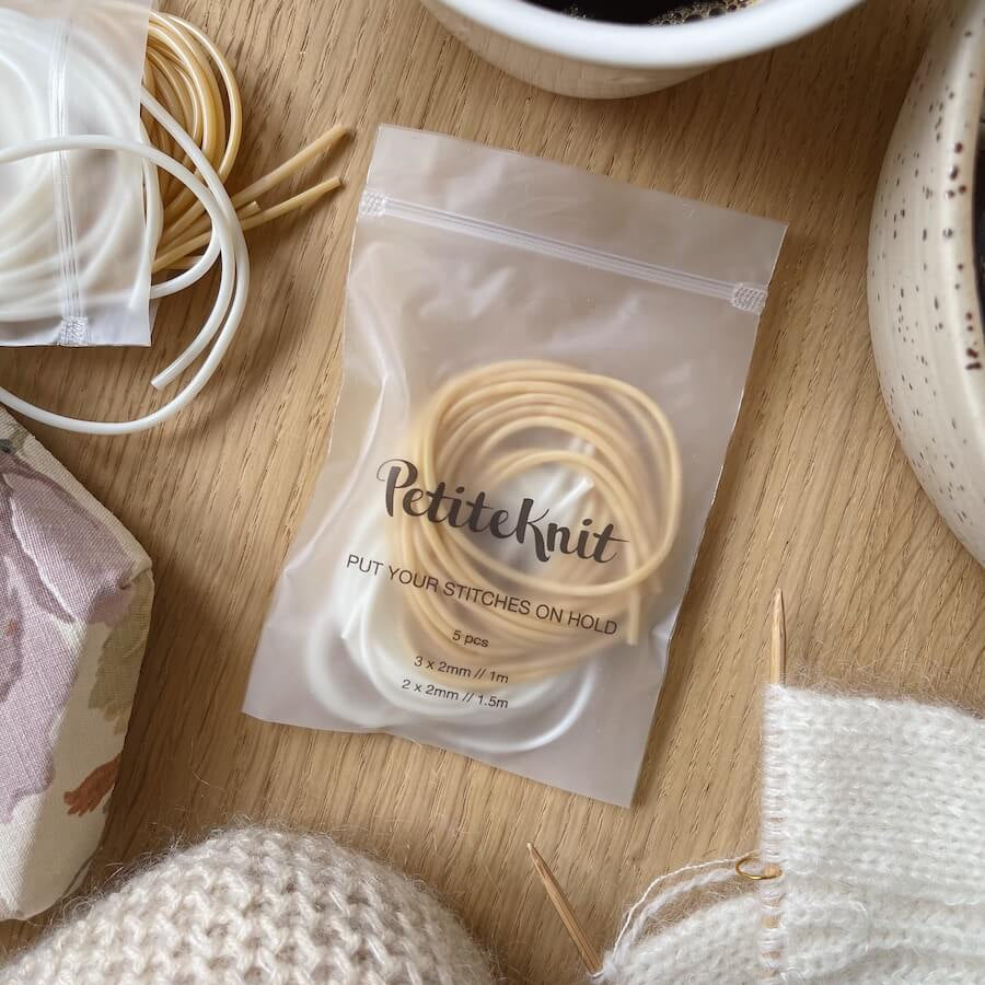 Palmikkopuikoista, erilaisista silmukoiden pitimistä, puikkosuojista, kerroslaskureista ja mittanauhoista on apua työn edetessä.