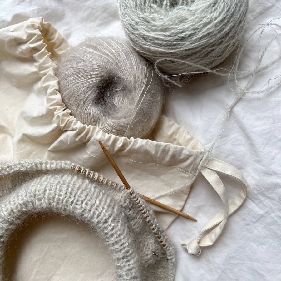 Päättelyneulaa tarvitsen työn viimeistelyssä. Neulonta ja virkkaus helpottuu, kun neulontatarvikkeet ja apuvälineet ovat kunnossa!