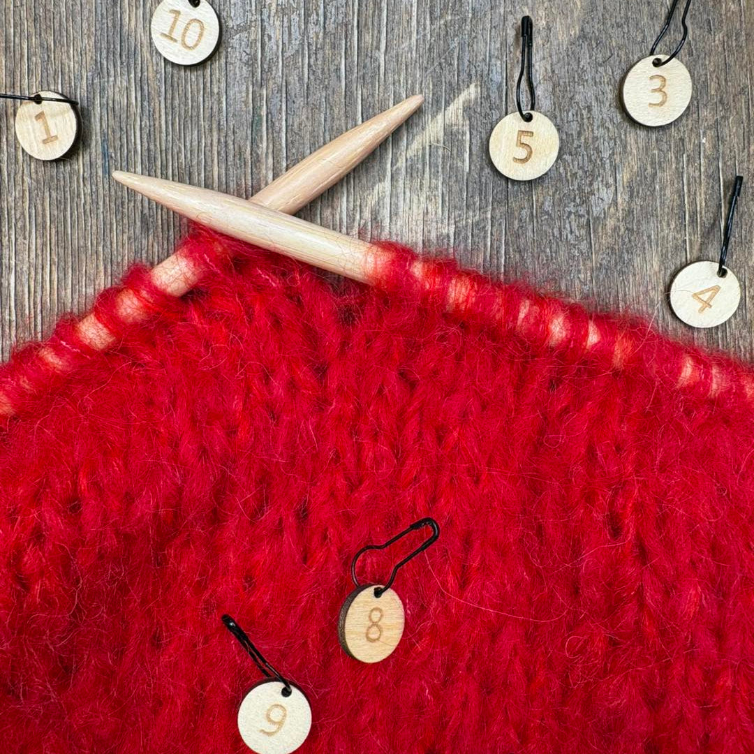 Silmukkamerkeillä merkkaat kerroksen aloituskohdat, neuleen etu- ja takapuolen sekä esimerkiksi sen mihin kohtaan tulee tehdä lisäyksiä tai kavennuksia.