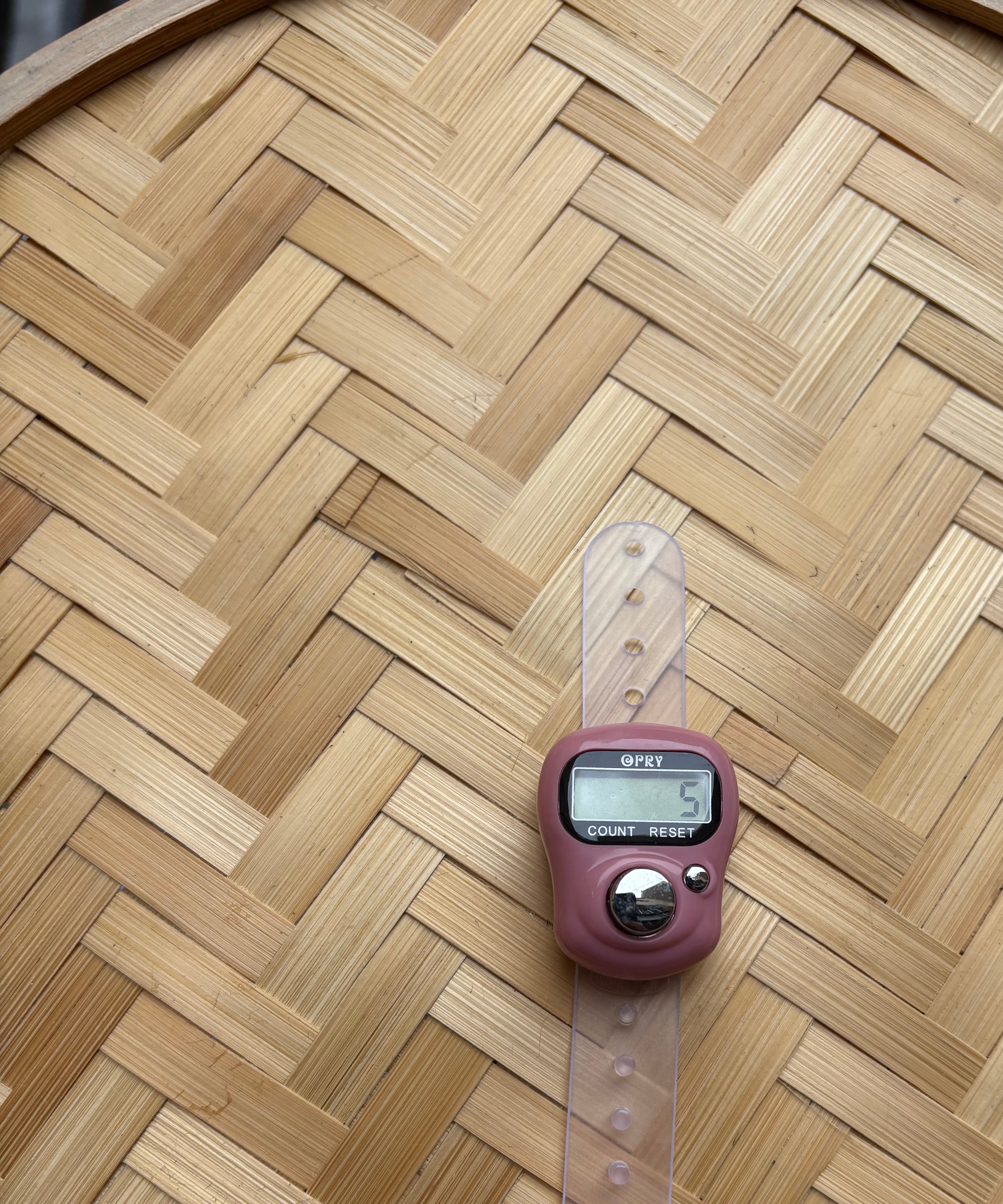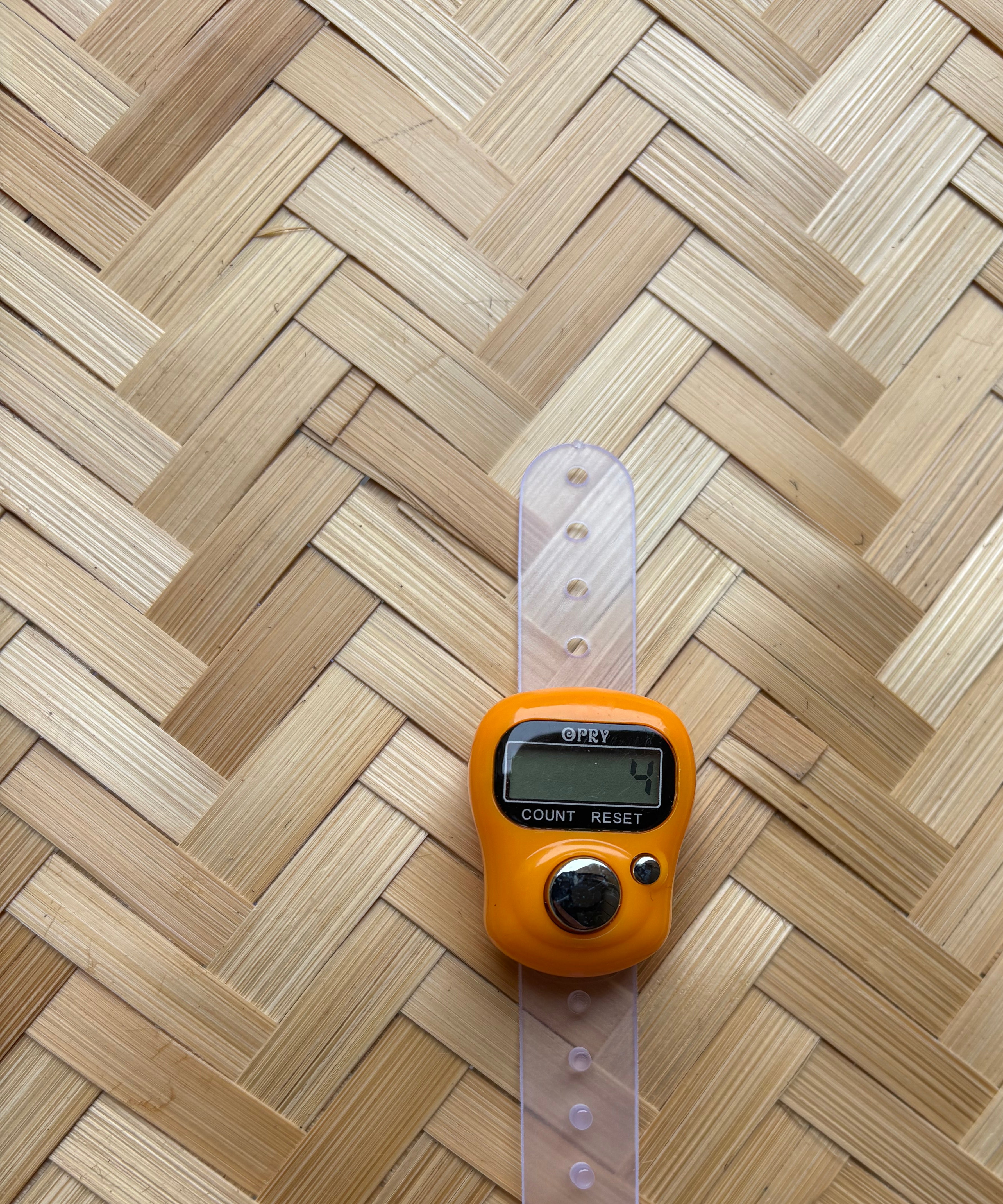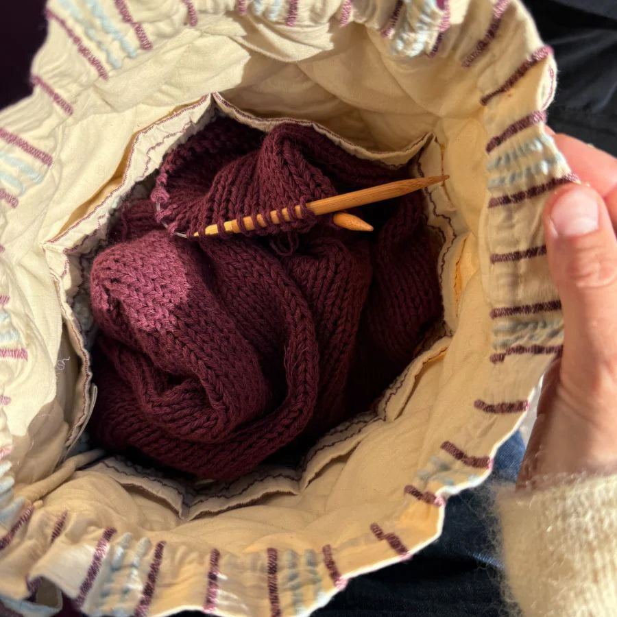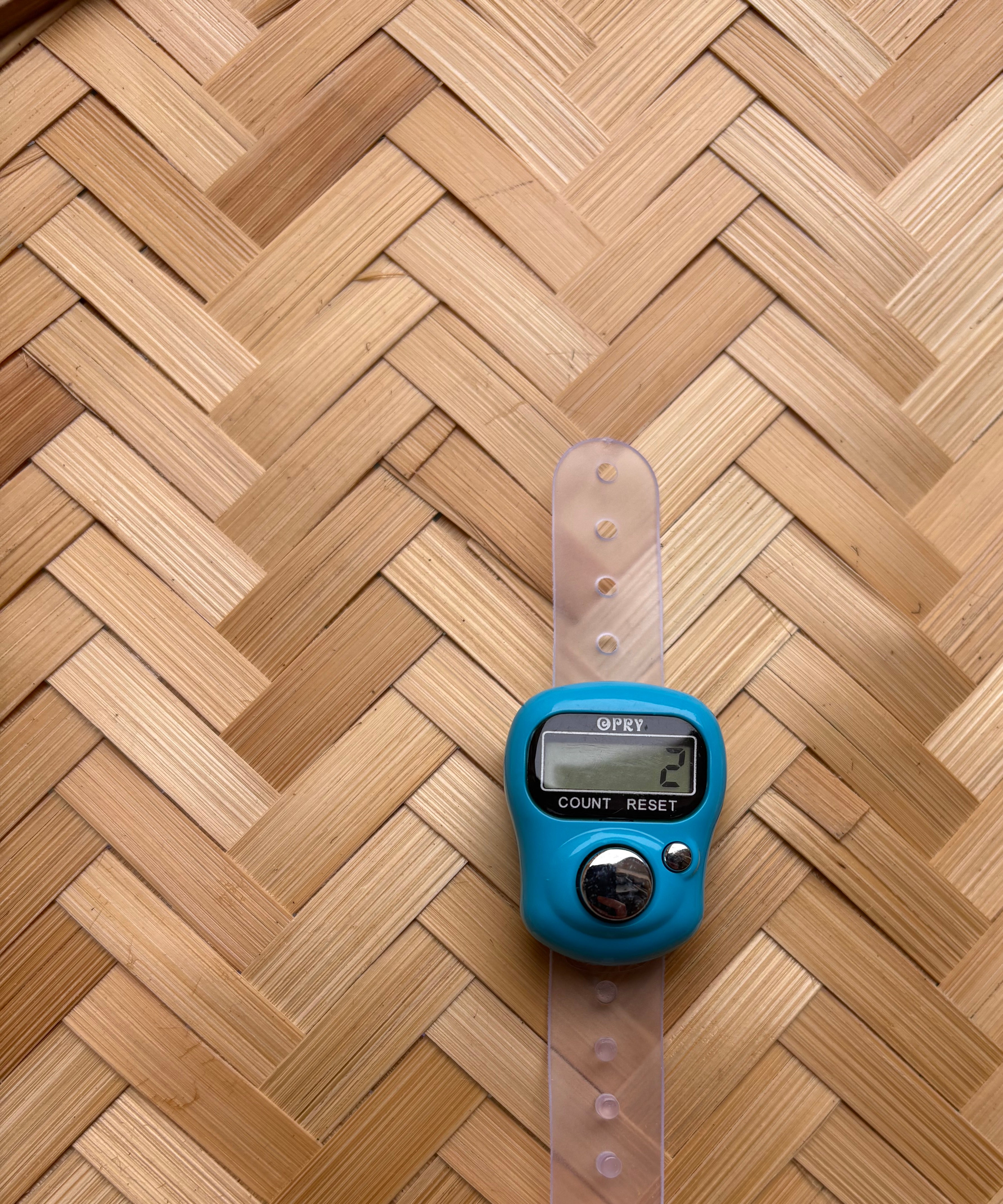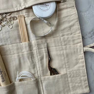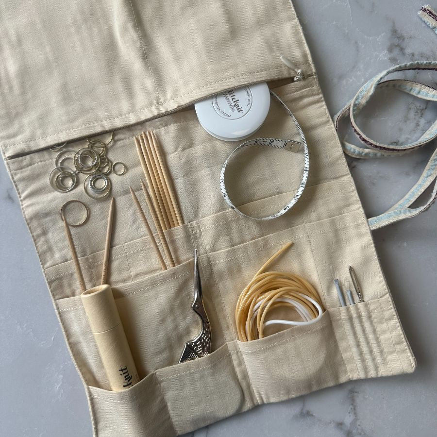 Palmikkopuikoista, erilaisista silmukoiden pitimistä, puikkosuojista, kerroslaskureista ja mittanauhoista on apua työn edetessä.