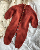 The Anker’s Onesie has a yoke with sections of rib with increases followed by a section in stockinette stitch with classic raglan increases. The suit is worked from the top down.
