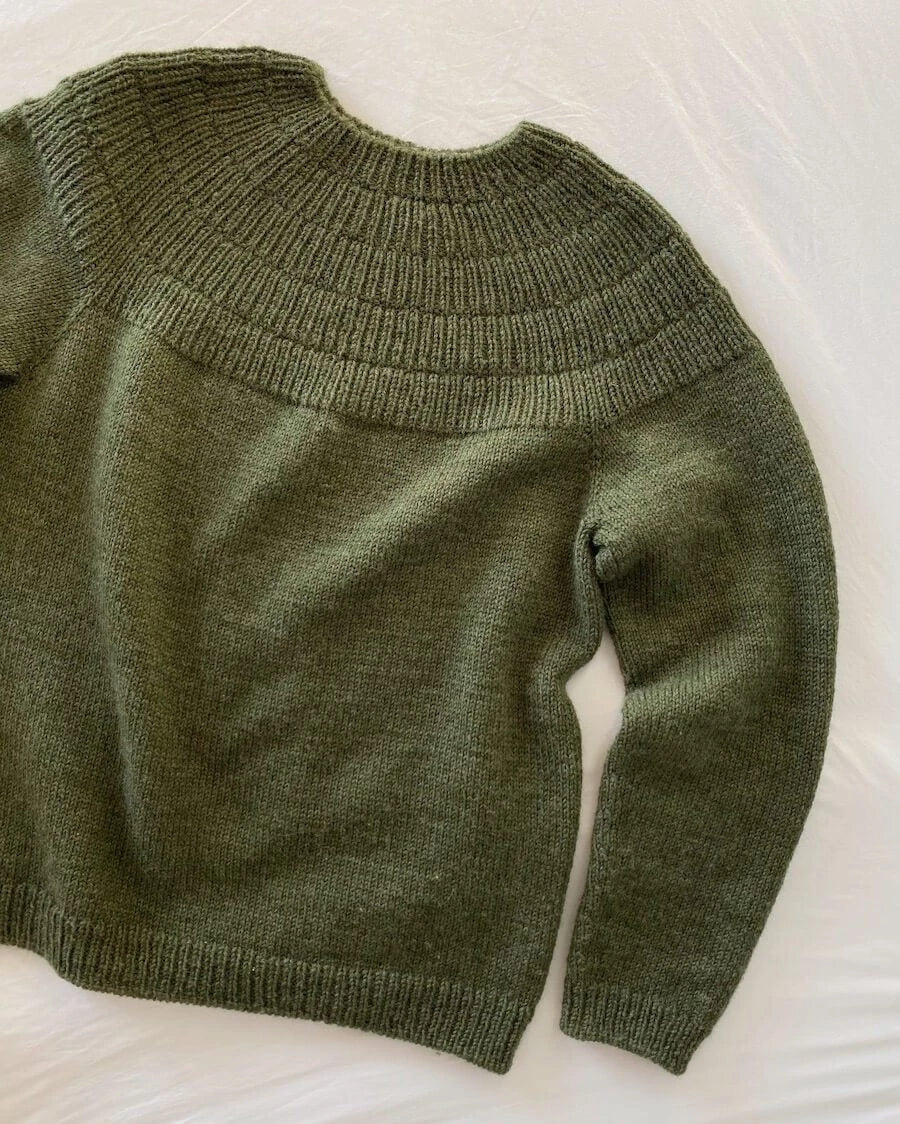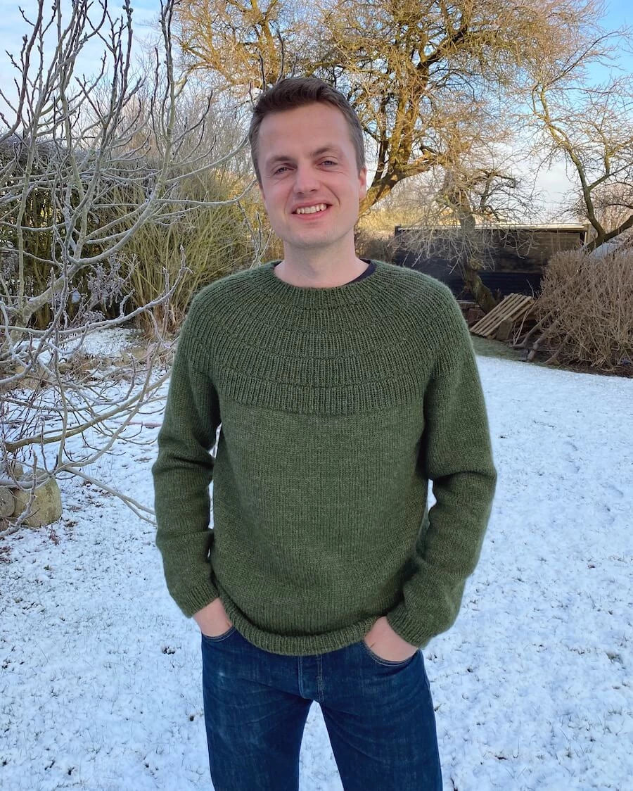 Anker’s Sweater – My Boyfriend’s Size is worked from the top down. The yoke is worked in sections of rib with increases in the round, followed by classic raglan increases when the stockinette stitch section begins. The sleeves are worked at the end, either on double-pointed needles or on circular needles using the Magic Loop technique. Anker’s Sweater – My Boyfriend’s Size has no finishing other than weaving in ends.