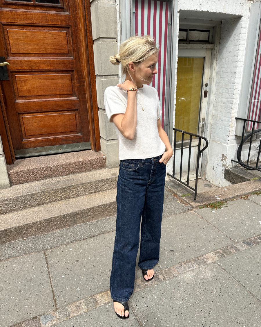 The white Cloud Tee is knitted in Compatible Cashmere by Knitting for Olive in color Fløde.