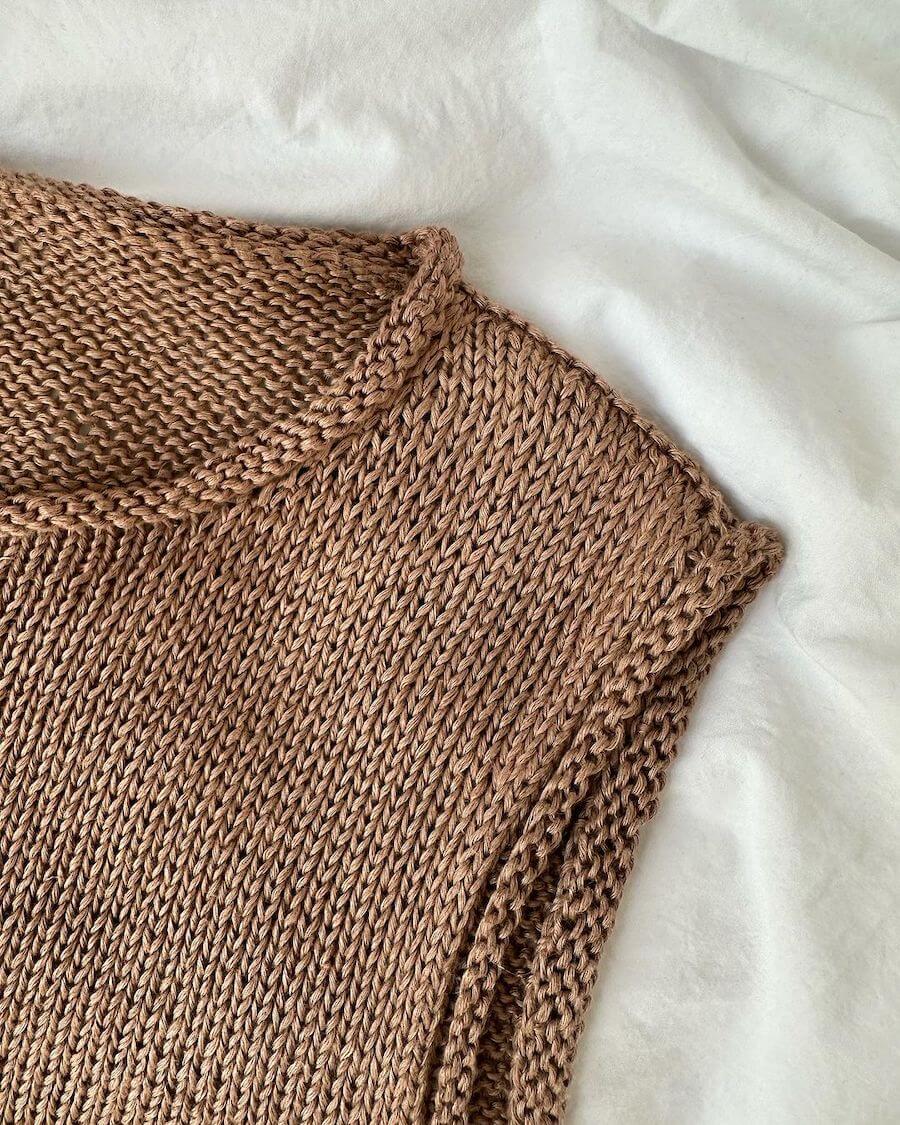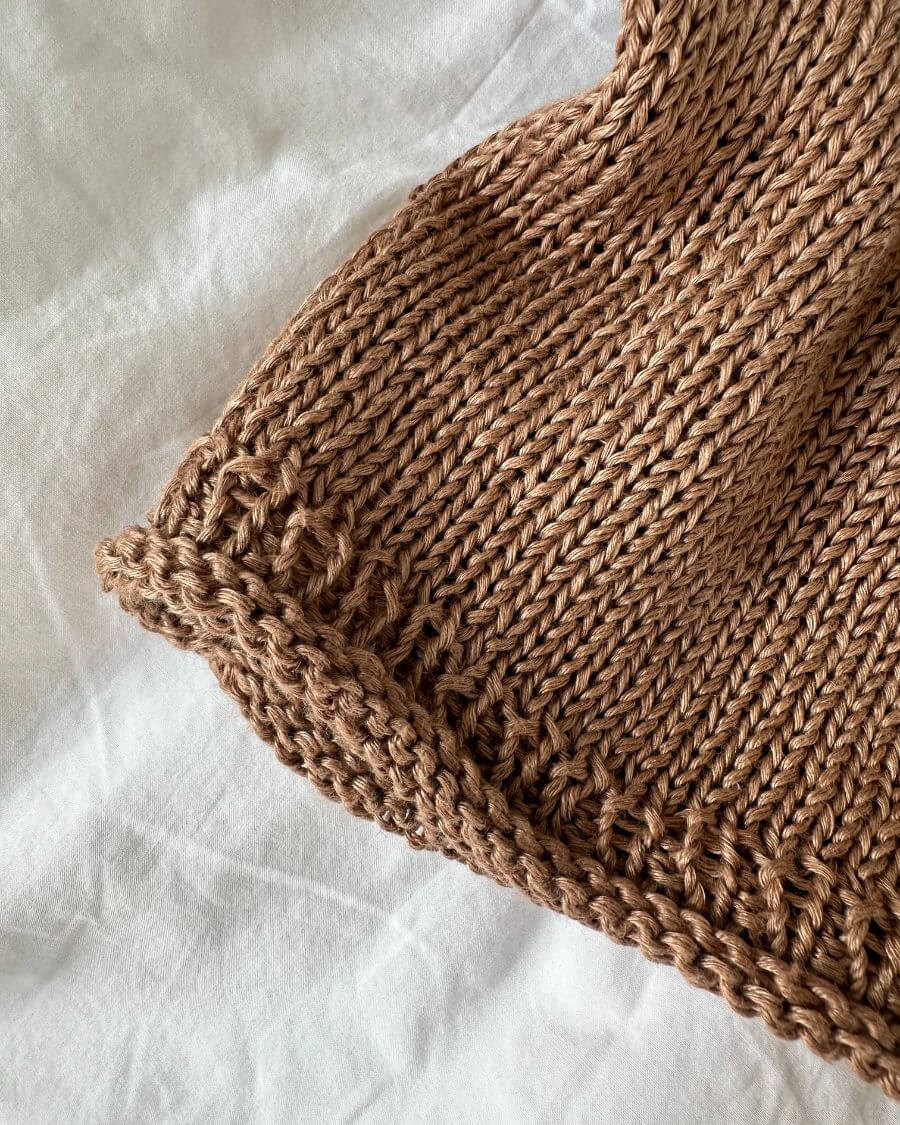 The brown Cloud Top is knitted in Hør Organic by Isager in color Camel.