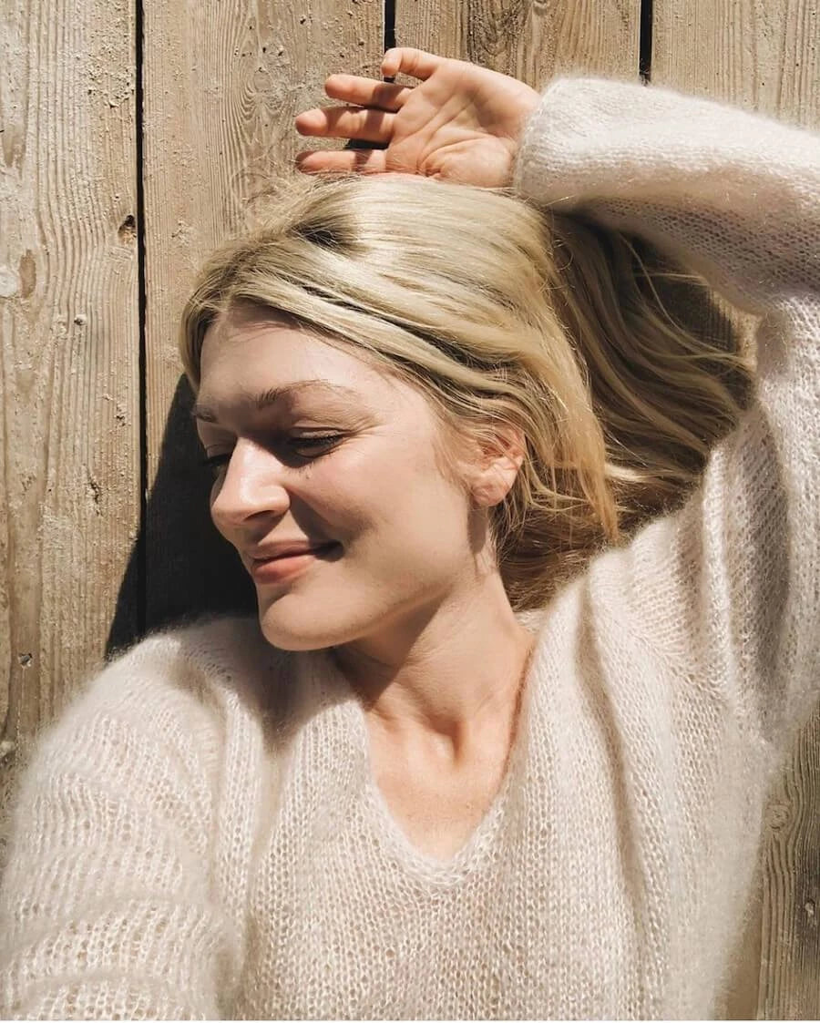 Lanka: 150 (175) 200 (200) 225 (225) 250 (250) 275 g Isager Yarn Silk Mohair (25 g = 212 m) tai Sandnes Garn Tynn Silk Mohair (25 g = 212 m) tai Mohair by Canard Brushed Lace (25 g = 210 m) tai Knitting for Olive Soft Silk Mohair (25 g = 225 m) tai Filcolana Tilia (25 g = 210 m).