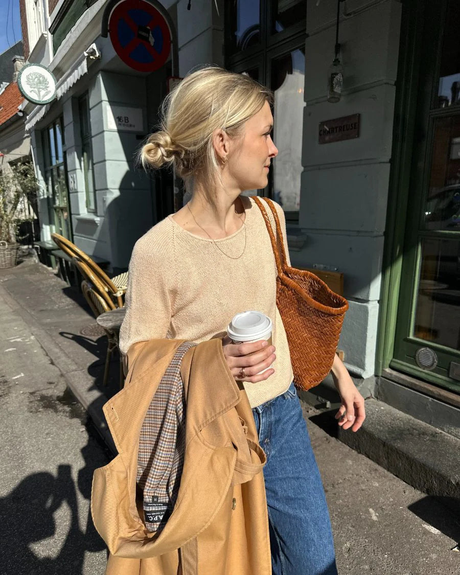 The peach Cumulus Tee O-neck is knitted in Pure Silk by Knitting for Olive in the color Blid fersken.