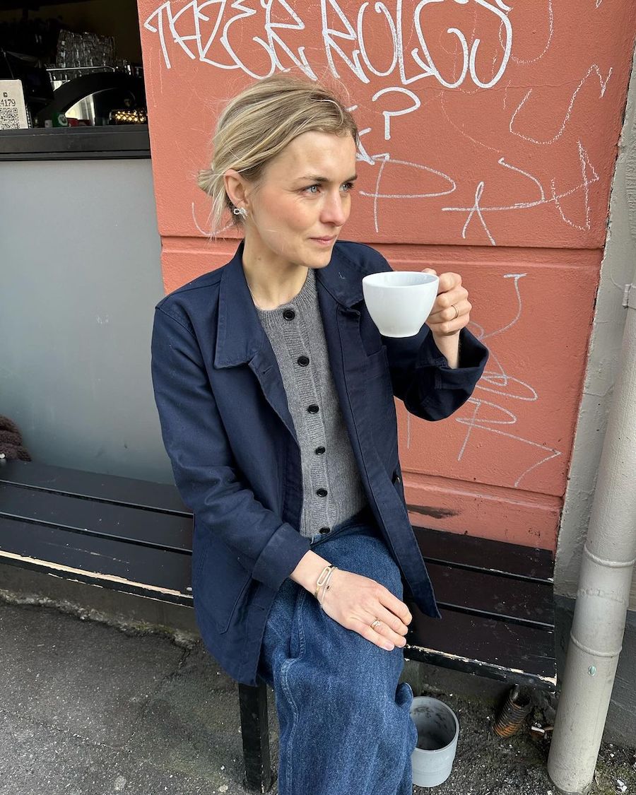 The grey Maggie Cardigan is knitted in Cashmere Classic by Cardiff in the color Fumo [519].
