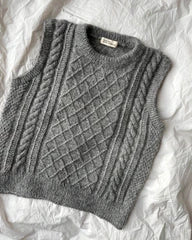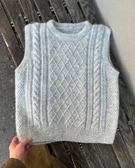 The Moby Slipover is worked from the top down in a texture and cable pattern. First the back yoke is worked. After this, stitches are picked up and knitted for the shoulders, which are then joined to form the front yoke. The front and back yoke are joined to form the body, which is worked straight down in the round. Rib edges are worked along the neck edge and armholes. Knit a swatch to determine which needle size you need to achieve the correct gauge – note that this can vary from yarn to yarn. Take care to wash the swatch before measuring, as the texture pattern can grow with wash.