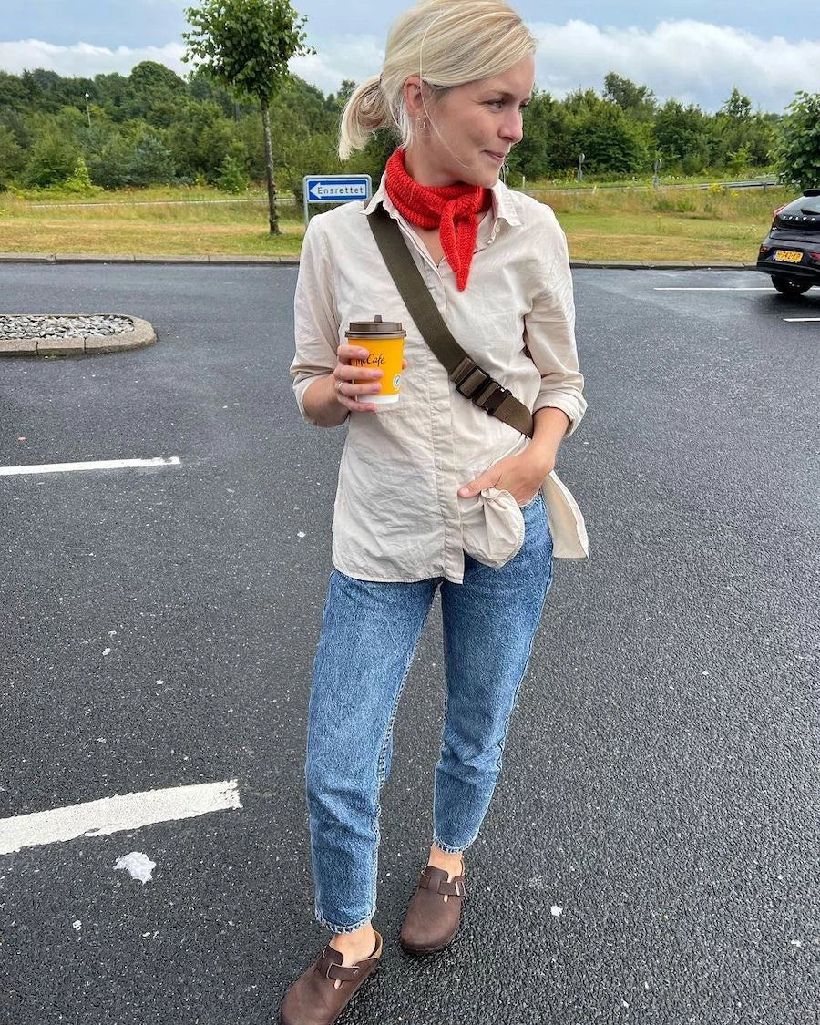 The red Sophie Scarf is knitted in Fino by Manos del Uruguay in the color Sealing Wax.