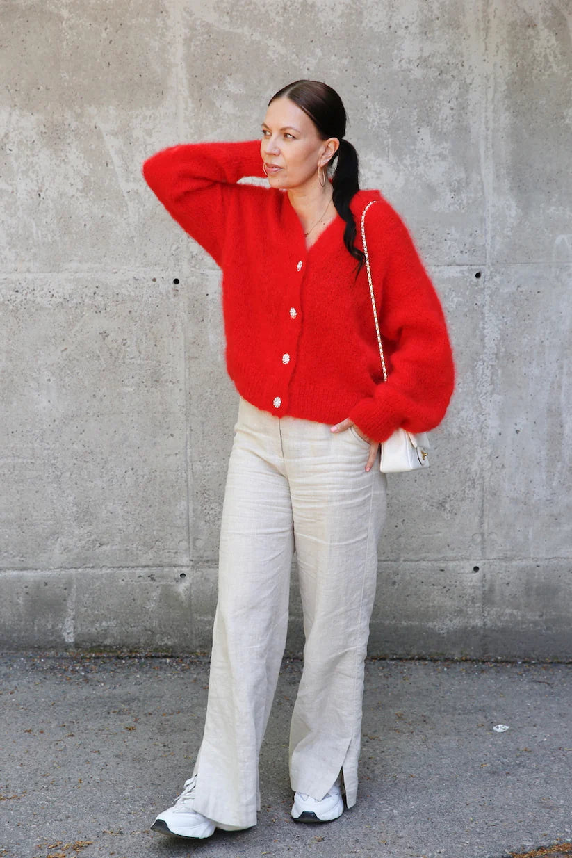 Vaivaton sileä neule tekee takkiprojektista mukavan kaiken tasoisille neulojille. Kauniit olkasaumat ja kimaltavat napit viimeistelevät trendikkään ilmeen.