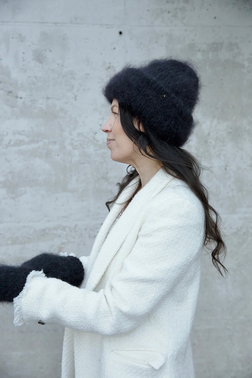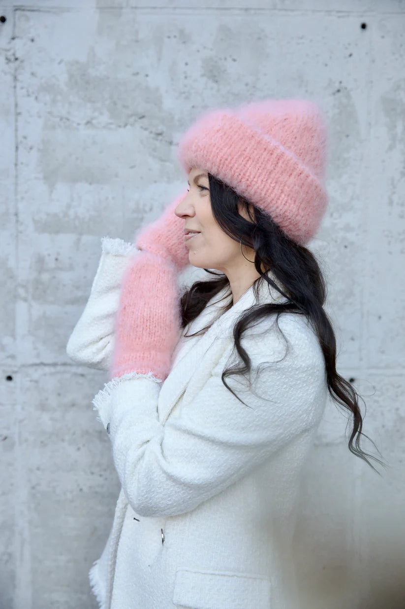 Pipo ja lapaset ovat tarkoituksella muhkeat, ja niiden on harjattu, jotta pinnasta tulee oikein pörröinen. Molemmat on myös neulottu tiiviisti, jotta syntyy paksu neulos, joka pitää tuulen loitolla.