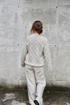 Takissa on eurooppalainen rakenne, mikä tarkoittaa taakse laskeutuvia olkapäitä. Hihat kavennetaan huomaamattomasti palmikkoneuleena.