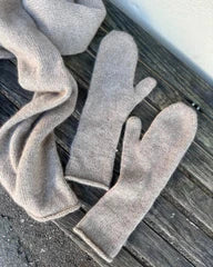The beige Vienna Set is knitted in Cashmere Classic by Cardiff in the color 511.
