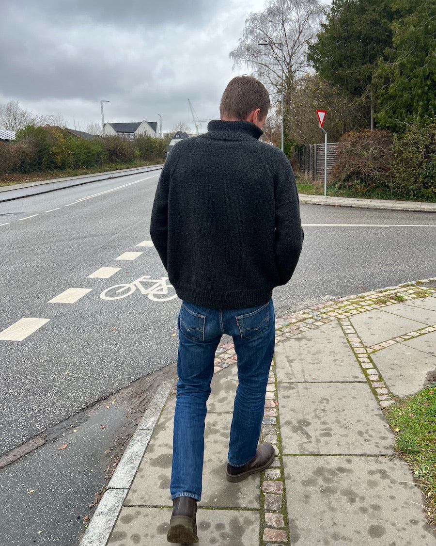 The Zipper Sweater Light – Man is worked from the top down. The collar is worked in rib, then folded double and knitted together. The yoke is worked with raglan increases, first back and forth on circular needles to create the slit for the zipper, then in the round on the circular needles. The body and the sleeves are worked in the round. Finally, a facing for the zipper is worked from resting stitches, so the zipper, after being sewn in, also looks presentable from the WS. The zipper is sewn in between the two layers of knitting – either by hand or on a sewing machine.