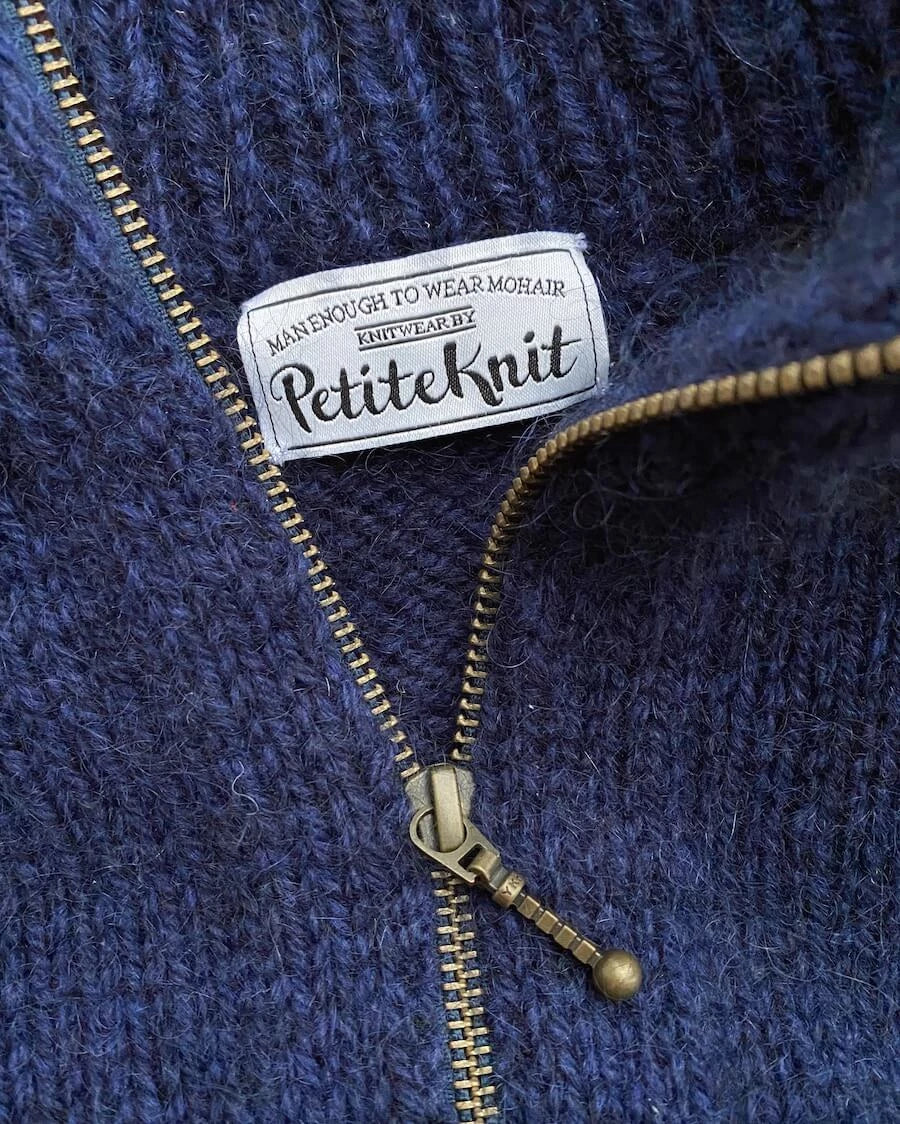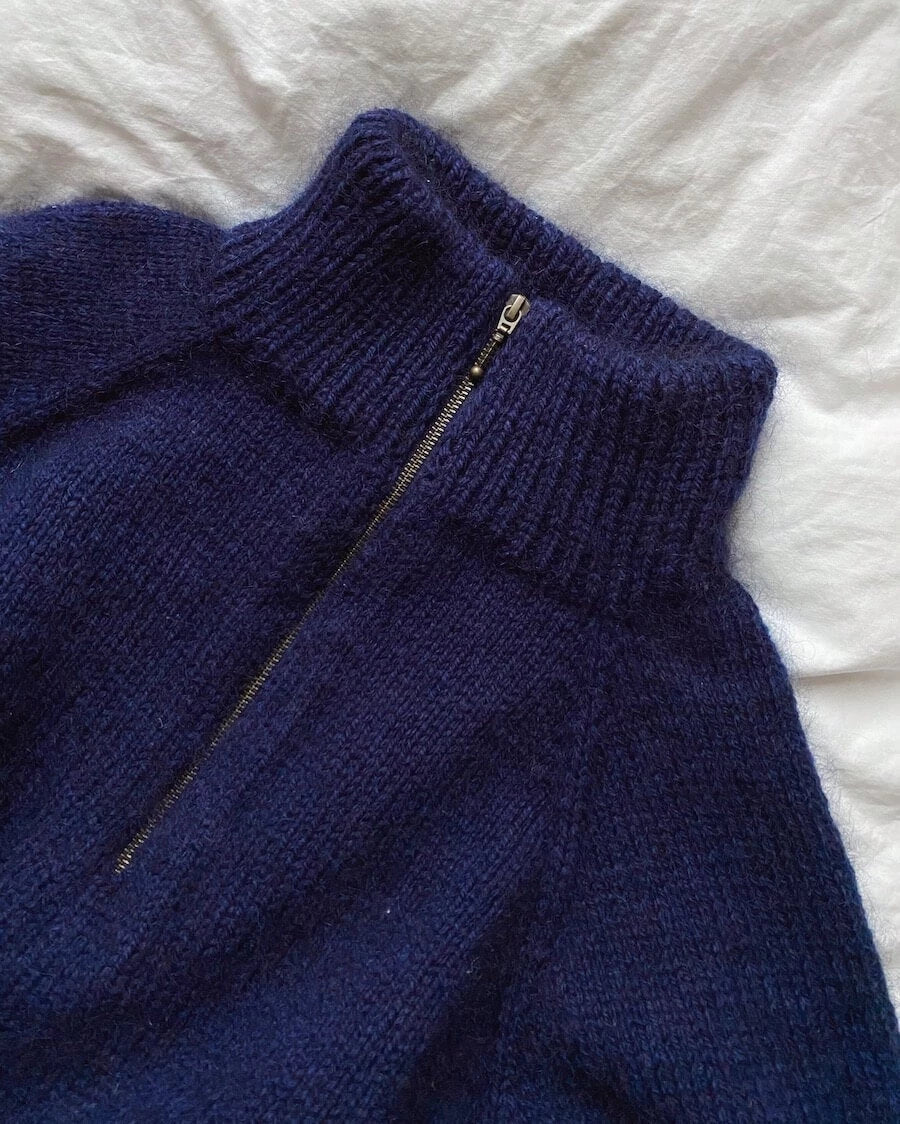 The Zipper Sweater - Man in the picture is knitted in Hyrdegarn from Hjelholts Uldspinderi in the color Marineblå.