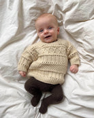 The white Ingrid Sweater Baby is knitted in Double Sunday by Sandnes Garn in the color Almond [2511].