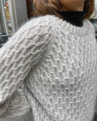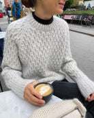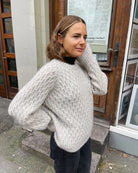 The Jenny Sweater is worked in the round from the bottom up with raglan decreases on the yoke. Body and sleeves are worked separately to the armholes and then joined on the circular needle for the yoke. The neckline is shaped by working back and forth on the needles, while binding off stitches. The neckline ribbing is knitted at the end from stitches that are picked up.