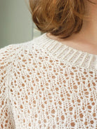 The sweater is knitted from top to bottom with a lace pattern in Tynn Line.