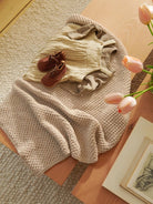 The blanket is knitted back and forth with ribbed edges, the other stitches are knitted with a pattern with two strands of Tynn Merinoull.