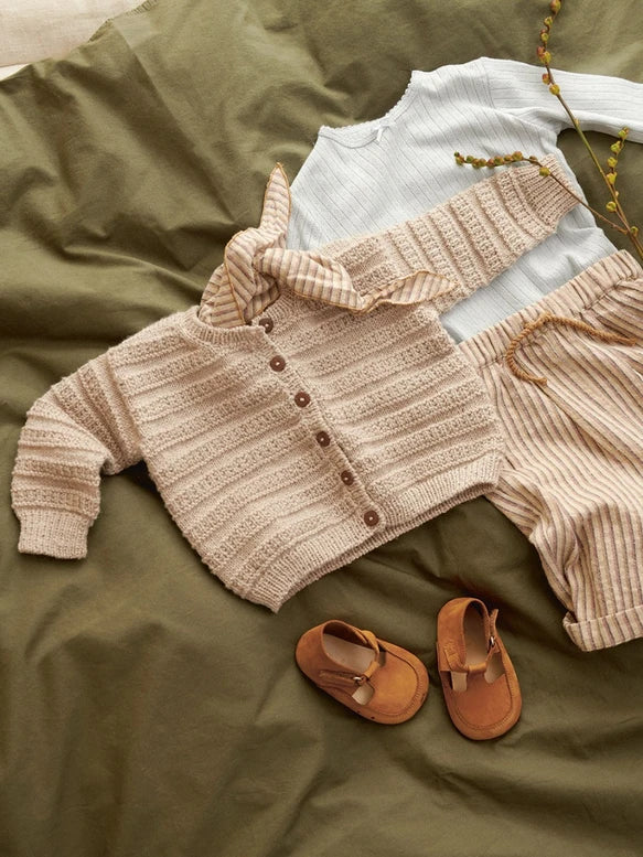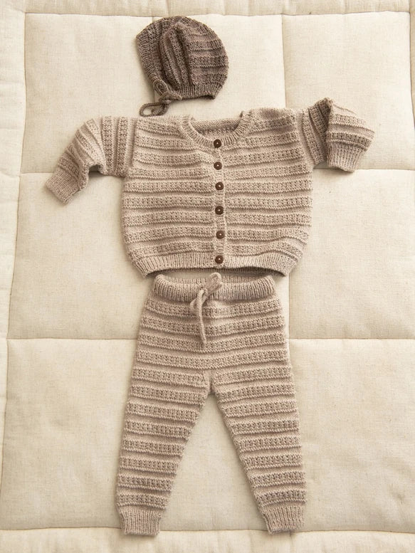 The pattern also includes a pattern for Fillip Cardigan and Fillip Bonnet baby.