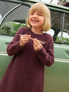 Sweet Pea Dress Junior in Kos features a timeless clover pattern that suits all occasions! The dress is worked top-down with a neat ribbed neckline and a round yoke, then flares into a playful skirt. Sleeves are worked in the round and finished with ribbing – a beloved classic!
