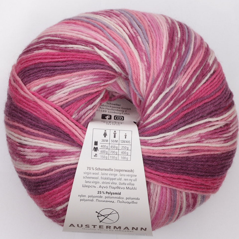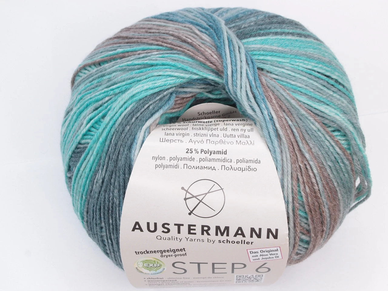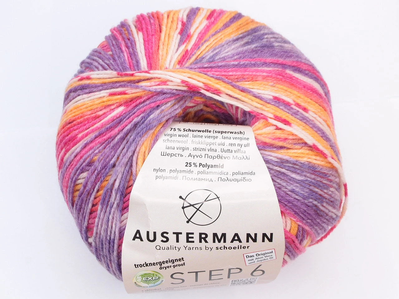 Austermann Step 6 kirjava sukkalanka on käsitelty aloe veralla ja jojoba-öljyllä. Käsittely tekee langasta silkkisen pehmeän ja äärimmäisen mukavan neuloa kuin itse käytössäkin. Käsittelyn vaikutus kestää jopa 40 pesukertaa. Austermann Step -langan tuotannossa käytetään ympäristöystävällistä EXP-menetelmää, jossa mm. klooria ei käytetä lainkaan. Austermann Step -lanka on myös konepesun ja rumpukuivauksen kestävä. Yksi kerä riittää sukkapariin kokoon 46 asti. M-kokoiseen naisten paitaan tarvitaan noin 450 g (kolme kerää).