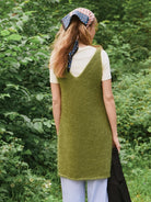 Meadow Dress in double strand Chunky Ballerina – a beginner-friendly and quick-to-knit dress that can be made in solid colour or with stripes. Worked from the top down with pretty V-neck details and a light, flowing skirt. Just as lovely on its own as over trousers.
