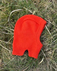 The red Everyday Balaclava is knitted in Double Sunday by Sandnes Garn in the color That orange feeling [3819].