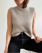 The Friday Slipover is worked from the top down in broken rib. First the back of the yoke is worked, then the shoulders, then the front of the yoke and finally the body. Rib edges are worked at the neck edge and along the armholes.