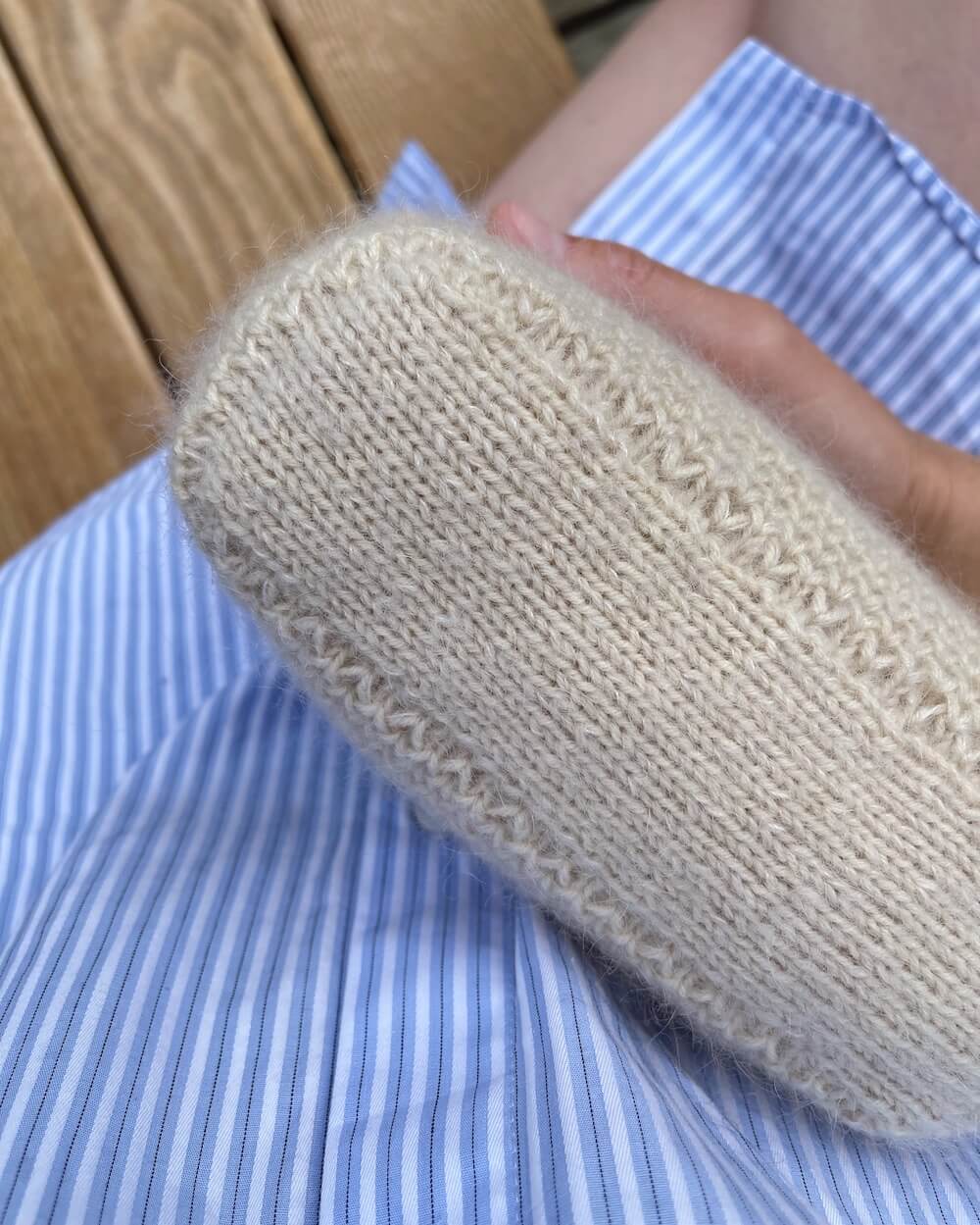 Materials: Approx. 30 g Sunday by Sandnes Garn (50 g = 235 m [254 yds]) or approx. 36 g Pelsuld 8/2 by Hjelholts Uldspinderi (100 g = 400 m [437 yds]) or approx. 24 g Saga by Filcolana (50 g = 300 m [328 yds]) held together with approx. 15 g Soft Silk Mohair by Knitting for Olive (25 g = 212 m [232 yds]) or approx. 15 g Tynn Silk Mohair by Sandnes Garn (25 g = 212 m [232 yds]) or approx. 16 g Silk Mohair by Isager (25 g = 210 m [232 yds]).
