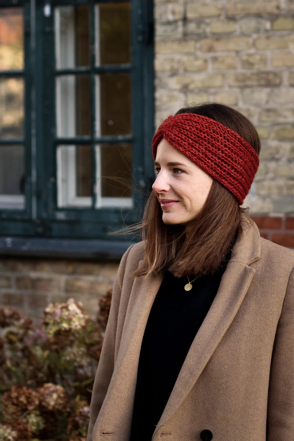 Ingeborg is a headband knit in brioche st with an elegant gather in the front which gives it a classic and feminine look.
