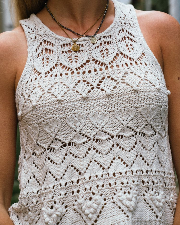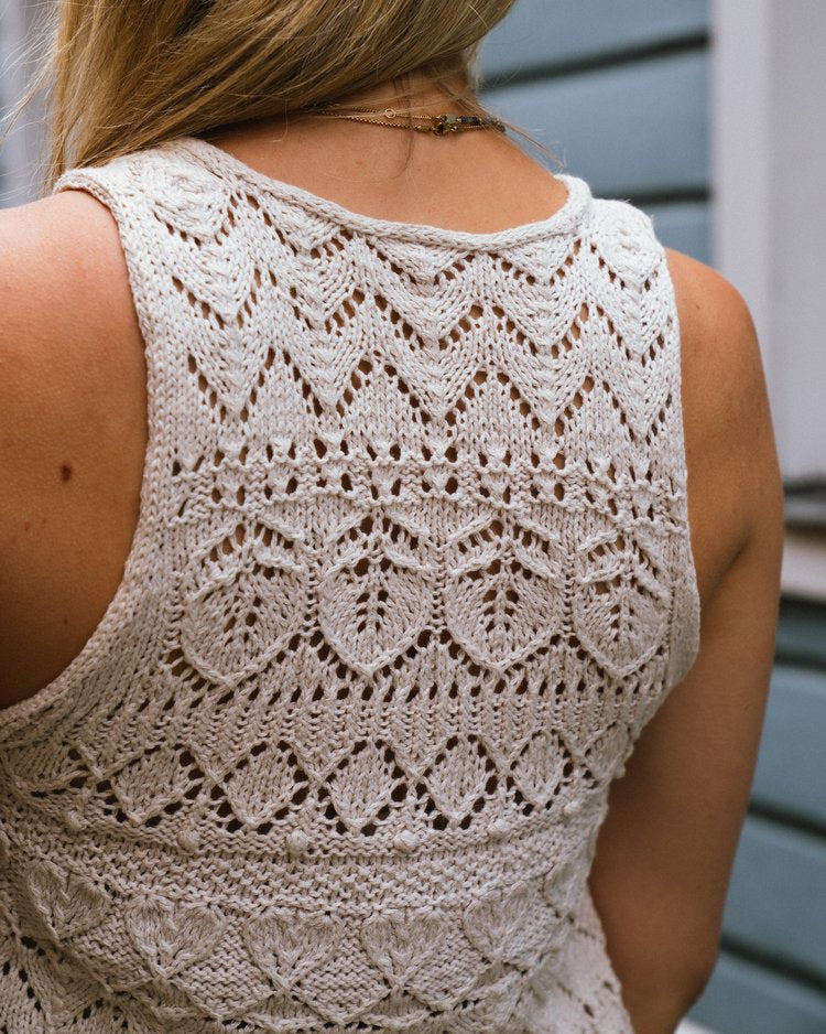 The Love Letter Top is a tribute to lace stitch patterns - a love letter written by a pair of knitting needles in the shape of a knitted fabric. The design was born from a desire to create something with an all over lace motif that keeps changing all the time. It’s a true celebration of the textures and intricate shapes that we can create with our knitting needles.