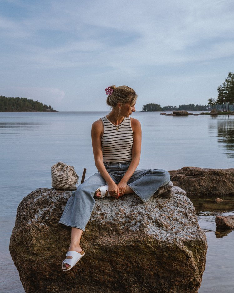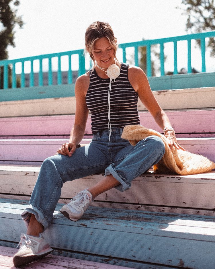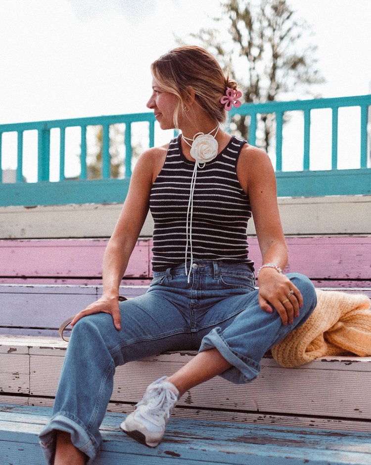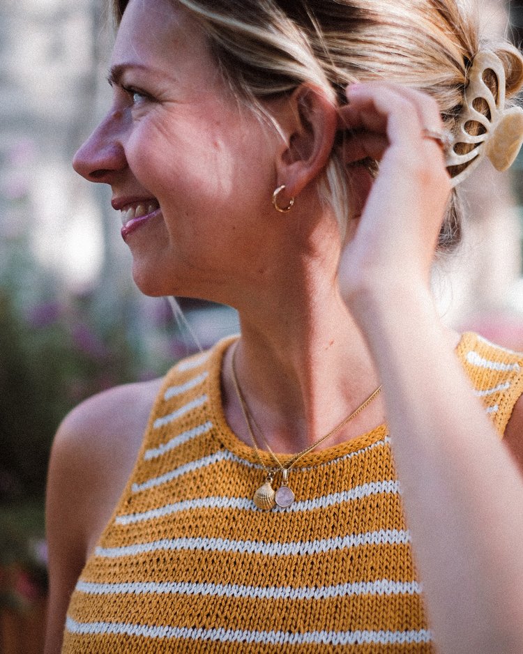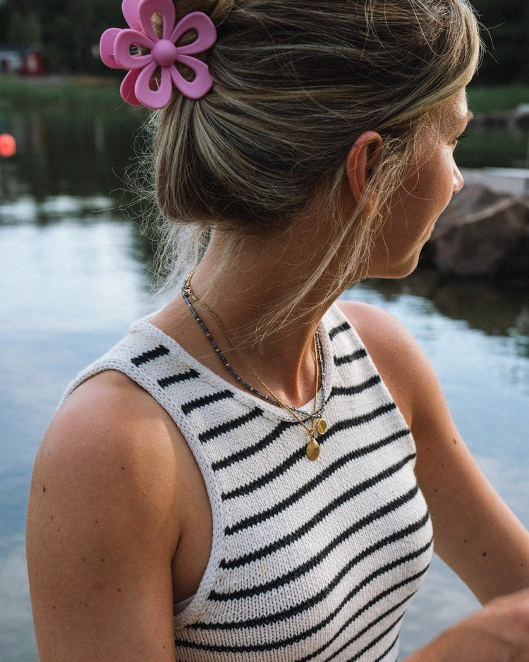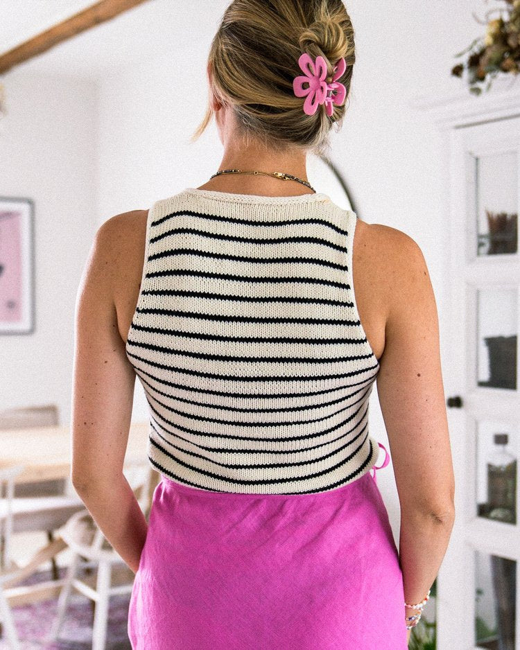 The Sailor Swift Top is a simple tank top with a slight racerback shape that gives it a contemporary look and a slight cool-girl vibe. The classic striped pattern together with the delicate i-cord edges around the neckline and armholes makes this a true wardrobe favorite that you’re going to want to wear (and knit) again and again.