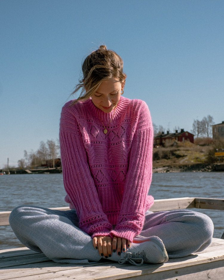 PINK The Pink sample is worked with 1 strand of Sandnes Garn Double Sunday together with 1 strand of Sandnes Garn Tynn Silk Mohair both in the color 4626.