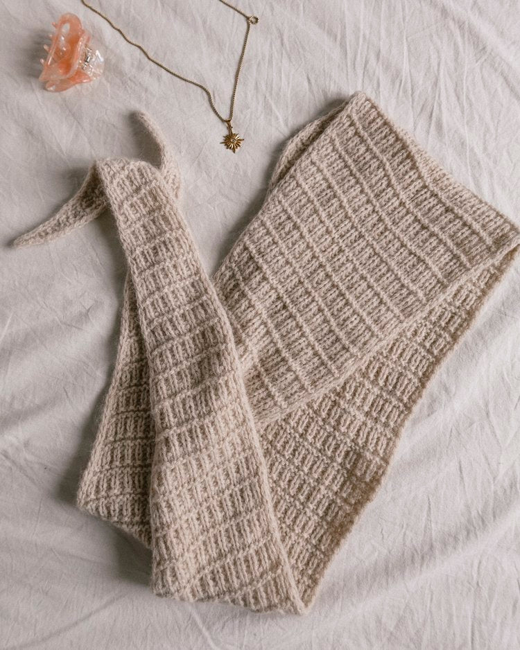 The Stay Toasty Scarf is all about texture, style, and—most importantly—keeping you warm. This design features a beautifully structured stitch pattern that is fully reversible, it adds both depth and squishiness to the fabric. The textured stitch pattern reminded me of the classic waffle texture—hence the name! This is the kind of scarf I envision grabbing when I want to layer up for a crisp morning walk, a coffee run, or when I just want to add a little extra something to my outfit.