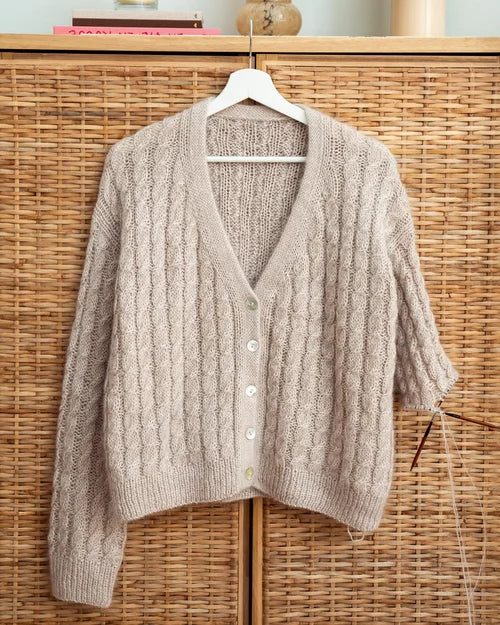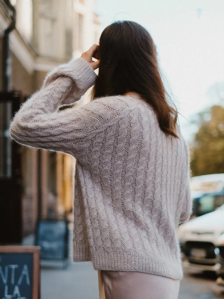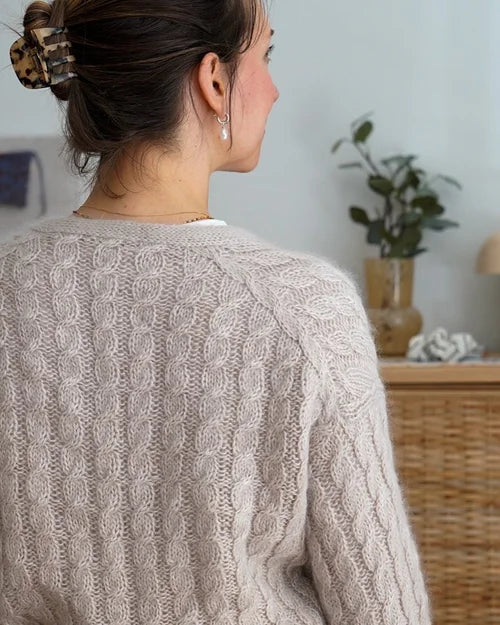 Sophisticable neuletakissa yhdistyy ajaton eleganssi sekä tyylikkyys. Neuletakin pudotettu olkapää ja koko miehustan peittävä palmikkokuviointi luovat modernin, mutta klassisen kokonaisuuden ja sitä on helppo kerrostella niin arkeen kuin juhlaankin. Neuletakki neulotaan saumattomasti ylhäältä alas jolloin itse voit päättää vartalon ja hihojen pituuden. Palmikoiden elävä tekstuuri antaa neuleelle syvyyttä, ja silkkimohair tuo pintaan hienostuneen, hohtavan kiillon.