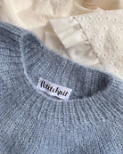 The light blue Novice Sweater - Mohair Edition is knitted in Silk Mohair by Isager in color 41.