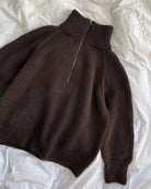 The brown Zipper Sweater Light is knitted in Peer Gynt by Sandnes Garn in the color Brun [3082].